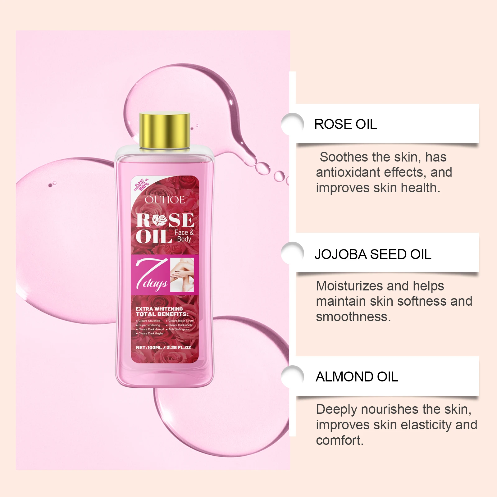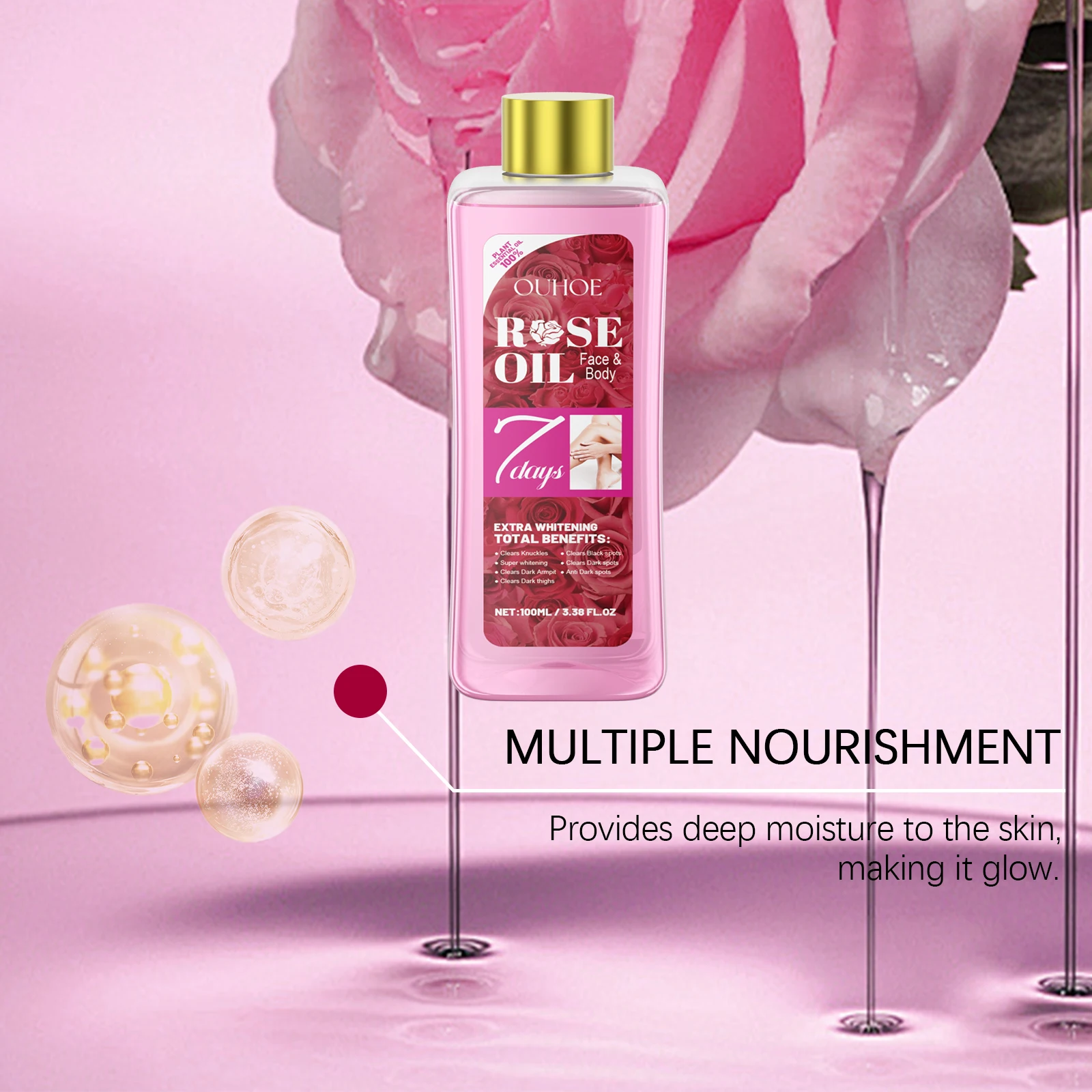 100ml Rose Body Oil with Moroccan Argan Oil And Vitamin E Intense Moisturizing Nourishing Dry Skin Massage Luxury Body Care