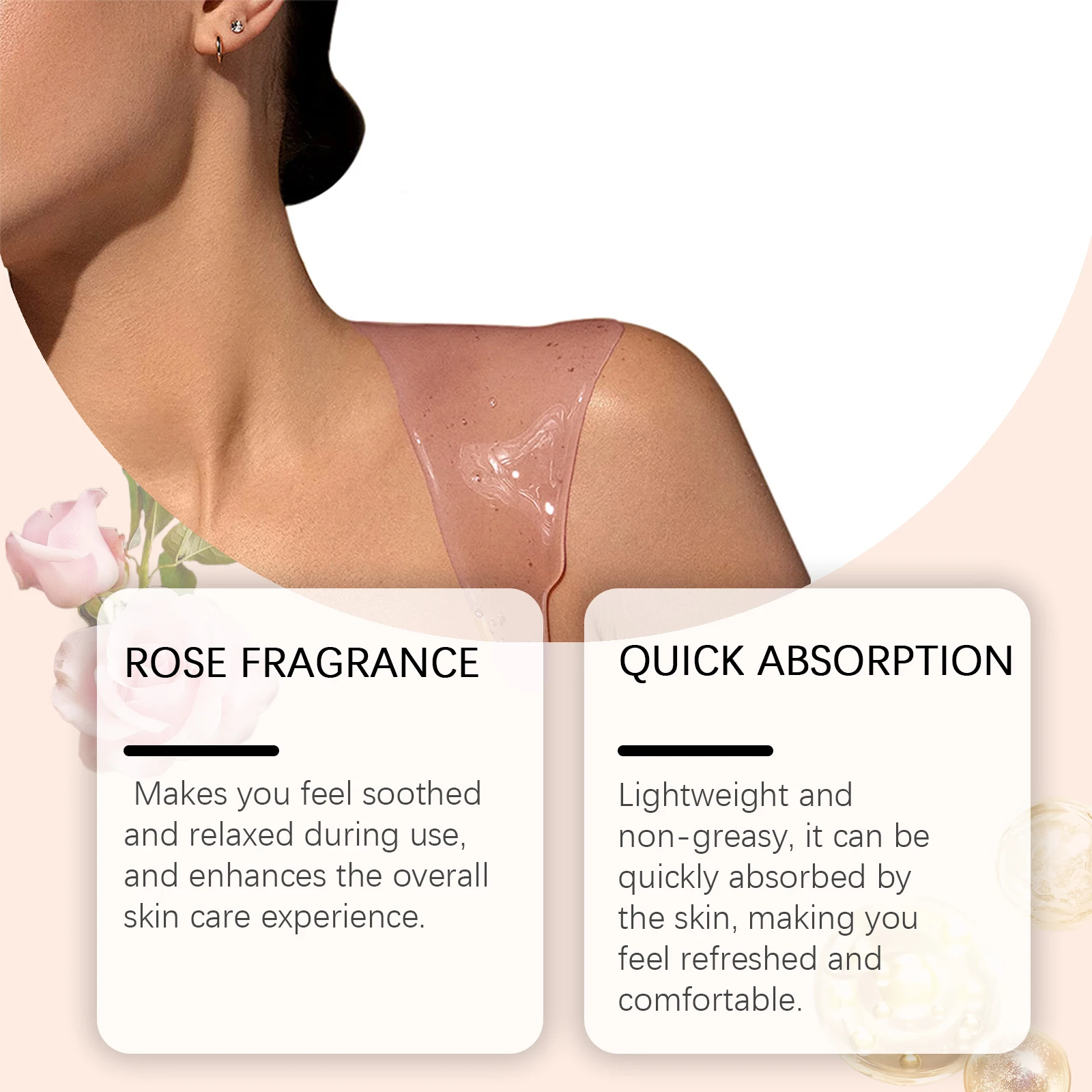 Enjoy the fast absorbing, non-greasy feel and the beautiful rose scent!